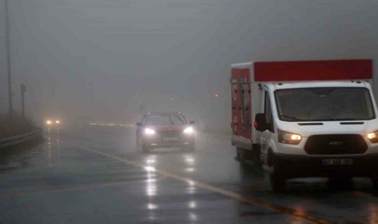 Bolu Dağı’nda etkili olan yağmur ve yoğun sis sebebiyle görüş mesafesi yer yer 20 metreye kadar düştü.
