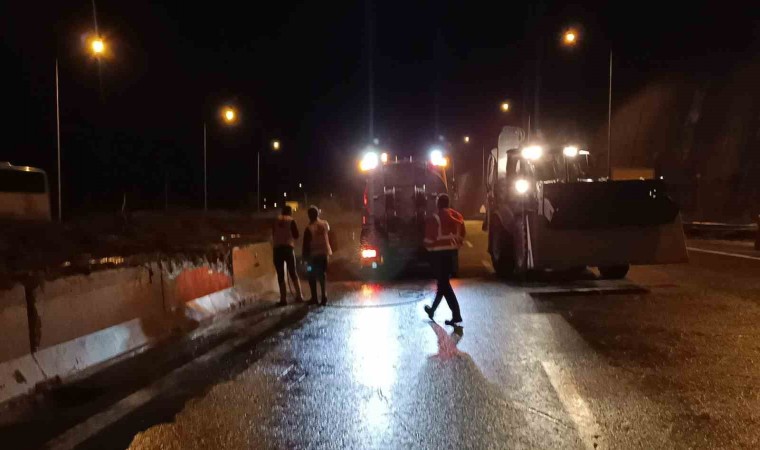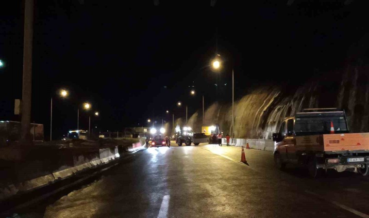 Türkiye’nin en önemli geçiş noktalarından biri olan TEM Otoyolu’nun Bolu Dağı Tüneli geçişinde dün meydana gelen heyelan nedeniyle İstanbul istikameti trafiğe kapatıldı. Gece saatlerinde bölgede geniş güvenlik tedbiri alındı. Temizlik çalışmaları gün ağarınca başladı. Ekiplerin gün boyu gerçekleştirdikleri hummalı çalışmasıyla yoldan heyelanın getirdiği malzemeler temizlendi. Heyelanın meydana geldiği dağın üzerinden tehlike arz eden topraklar yola indirildi. Kara yolları ekipleri otoyolda yıkama çalışması yaptı. Yaklaşık 30 saattir kapalı kalan trafiğin İstanbul istikameti gece saatlerinde yeniden trafiğe açıldı. Heyelanın olduğu alanda tedbir amaçlı yol 2 şeritten kontrollü olarak sağlanacak.