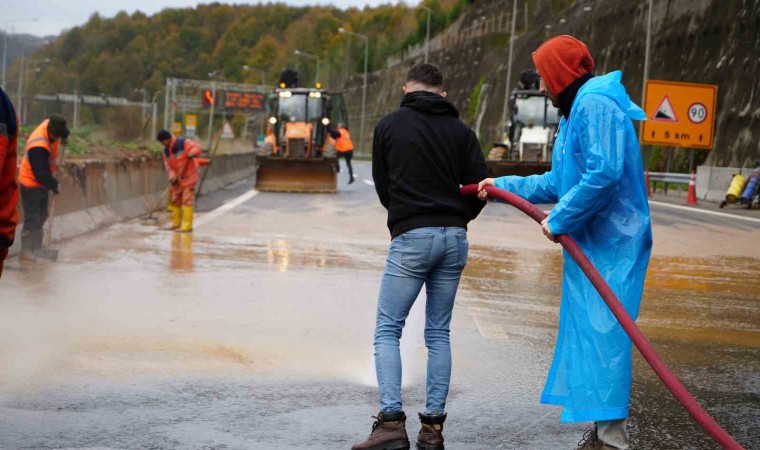 Bolu Dağı’nda dün akşam saatlerinde etkili olan sağanak yağmur nedeniyle Anadolu Otoyolu’nun Bolu Dağı Tüneli çıkışındaki ormanlık alandan toprak kaymalarının olduğu belirlendi. Karayolları ekipleri tarafından bölgede inceleme yapılarak, Bolu Dağı Tüneli İstanbul istikameti trafiğe kapatıldı. Bölgede güvenlik amacıyla tedbirler alındı. Olay yerinde jandarma, polis ve karayolları ekipleri, İstanbul istikametine gidecek olan sürücüleri Abant kavşağına yönlendirerek trafik akışını sağladı. Bolu Valisi Erkan Kılıç ile Karayolları Bölge Müdürlüğü yetkilileri heyelan riskinin bulunduğu alanda inceleme yaptılar. Gece boyu otoyolun İstanbul yönü ulaşıma kapalı kalırken sabah saatlerinden itibaren karayolları ekipleri dağdan yola sızan çamurlu suyu temizlemek için çalışma başlattı. Yoldaki suyun temizlenmesinin ardından yol 2 şeritten trafiğe açıldı.