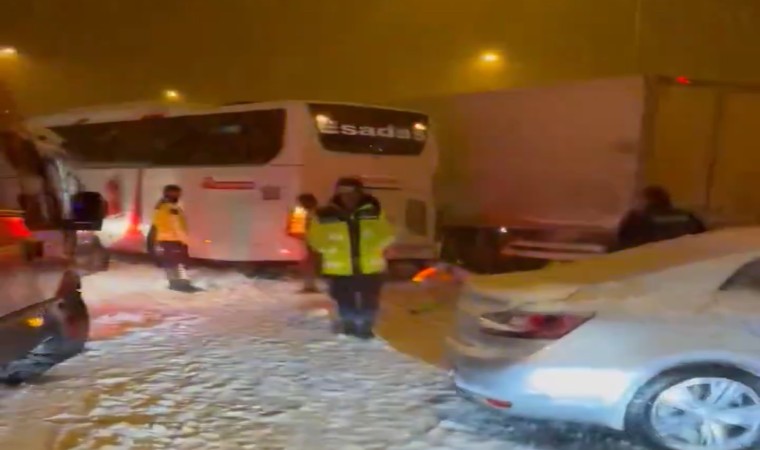 Kaza, TEM Otoyolu’nun Bolu Dağı Tüneli çıkışında İstanbul istikametinde meydana geldi. Edinilen bilgiye göre, İstanbul istikametinde seyreden yolcu otobüsü, tünel çıkışında tırla çarpıştı. Kar yağışının etkili olduğu bölgede bir otomobil duramayarak araçlara çarptı. Meydana gelen kazada 3 kişi yaralandı. Kaza nedeniyle İstanbul istikametine ulaşım kapandı. Otoyol Jandarma ve karayolları ekipleri yolun açılması için çalışmalarını sürdürüyor. Sürücüler Abant Gişeleri’nden ve Bolu Dağı Tüneli girişinden D-100 Karayolu’na yönlendiriliyor.