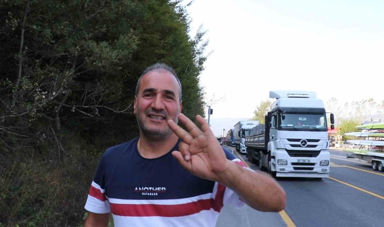 Sakarya’dan Adana’ya giden 2 şoförlü tırın sürücüsü Baki Aktaş, trafiğin durduğu anlarda araçtan indi. Aracından inerek yolda yürüyen Aktaş, "3 saat oldu. Yürüyerek gidiyorum artık. Çift şoför çalışıyoruz. Araçtan indim yürüyorum. Daha hızlı gidiyorum” dedi.