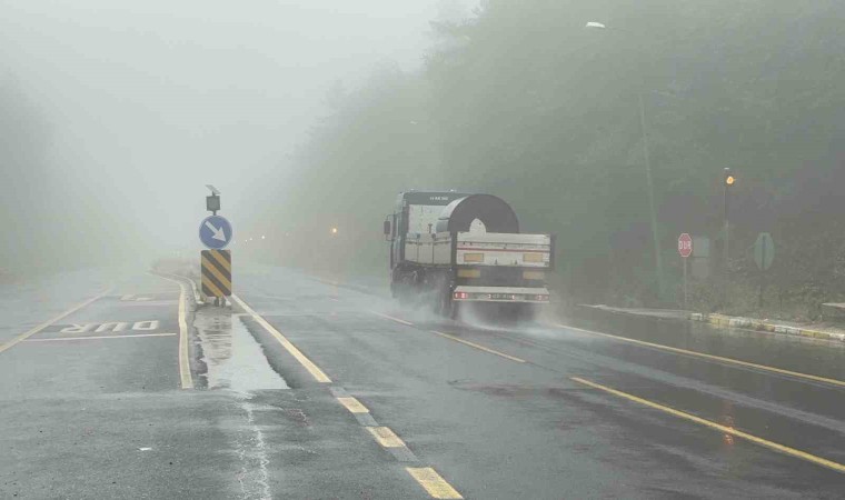 Türkiye’nin en önemli geçiş güzergahlarından biri olan D-100 kara yolunun Bolu Dağı geçişinde yoğun sis ve sağanak sebebiyle görüş mesafesi 20 metreye kadar düştü.