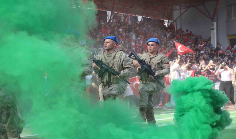 Yapılan gösterilerin ardından öğrenciler, sporcular ve Bolu 2’nci Komando Tugay Komutanlığı’na bağlı komandoların geçit töreni yoğun ilgi gördü. Stadyumda sis bombaları arasında yürüyen komandolar, törene katılanlar tarafından dakikalarca alkışlandı. Komandoların marşlarla yürüyüşü sırasında katılımcılar, Türk bayraklarıyla sevgi gösterilerinde bulundu.