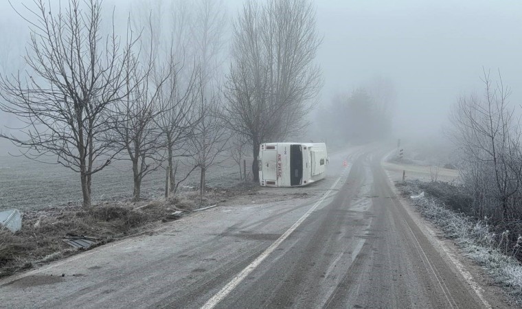 Bolu’da Akpiliç firmasına ait işçi servisi, buzlanma nedeniyle köy yolunda devrildi. Kazada 9 kişi yaralandı.