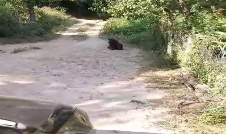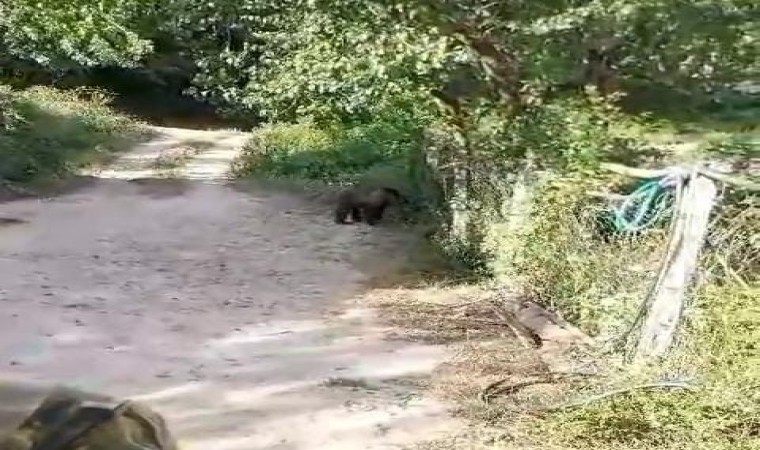 Bolu’nun Mengen ilçesinde bir çiftin evlerinin önüne gelen yavru ayı dakikalarca gitmek bilmedi. Ayının gitmesi için çaba harcayan ev sahiplerinin aralarında geçen diyaloglar ise güldürdü.