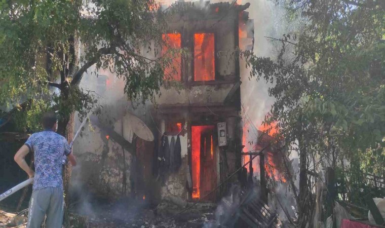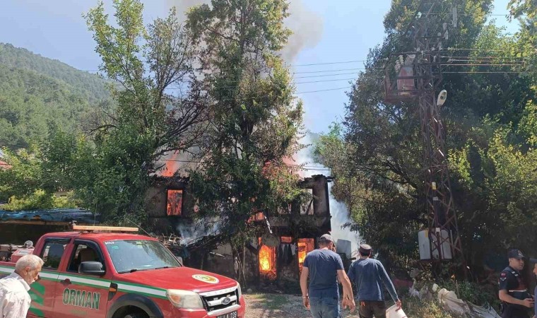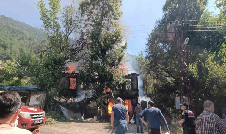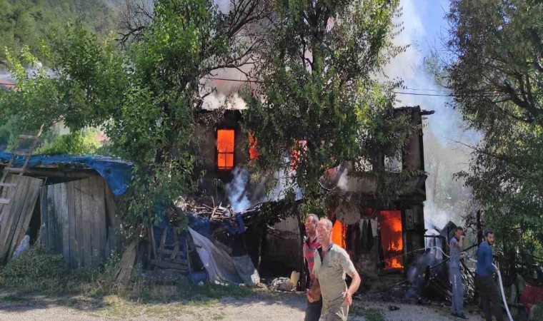 Bolu’nun Göynük ilçesinde iki katlı ahşap ev alev alev yandı.