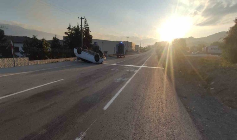 Bolu’nun Mudurnu ilçesinin giriş yolunda kontrolden çıkan bir otomobil, takla atarak yolda tepetaklak oldu. Meydana gelen kazada otomobil sürücüsü yaralandı.