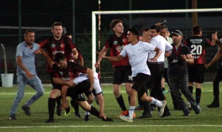 Bolu Muhtarlar Derneği ve Bolu Amatör Spor Kulüpleri Federasyonu iş birliğinde düzenlenen 48 köyün katıldığı futbol turnuvası 5 gün önce başladı. Elde edilen gelirin deprem bölgesine bağışlanacağı turnuvada dün akşam, Karaçayır Mahallesi’nde bulunan futbol sahasında Yenicepınar ve Kuzören köyleri karşı karşıya geldi. Yenicepınar maçı 2-1 önde sürdürdüğü sırada, bir pozisyon sonrası 2 takımın oyuncuları arasında kavga çıktı. Kavgaya tribünden sahaya atlayan taraftarlar da katıldı. Polisin ve diğer taraftarların araya girmesiyle saha içindeki kavga sonlandırıldı. Kavga saha dışında da devam etti. Maçı izlemeye gelen 2 köyün sakinleri birbirine tekme ve yumruklarla saldırdı. Bir taraftar, otomobilin üzerine çıkıp kavga eden grubun arasına yüz üstü atladı. Kavga, polisin ve diğer vatandaşların müdahalesi ile sonlandırıldı. Kavga anları cep telefonu kamerasıyla görüntülendi. (DHA)