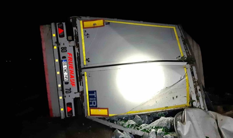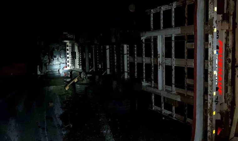 Jandarma olay yerinde çekici çağırarak tırın bir an önce yoldan kaldırılması için çalışma başlattı.