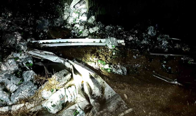 Kaza, gece saatlerinde Mudurnu Akyazı karayolunda yaşandı. Beypazarı’ndan Akyazı istikametine gitmekte olan maden suyu yüklü 06 DP 72 79 plakalı tır kontrolden çıkarak yola devrildi. Araçta yüklü bulunan maden suyu şişeleri tarlaya ve şarampole devrilirken birçok şişenin kırıldığı görüldü. Sürücü şans eseri yara almadan kendi imkanları ile aracından çıktı. Olay yerine gelen ekipler alternatif yol olarak trafiği eski Mudurnu taş kesti karayoluna yönlendirdi.