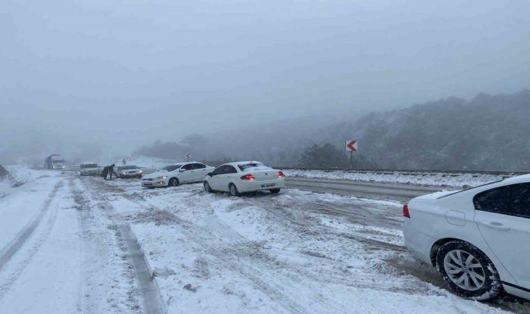 Bolu-Mudurnu karayolunda etkili olan yoğun kar yağışı nedeniyle onlarca araç yolda kaldı. Kontrolden çıkarak yol kenarında mahsur kalan araçlar, çekici yardımıyla kurtarıldı.
