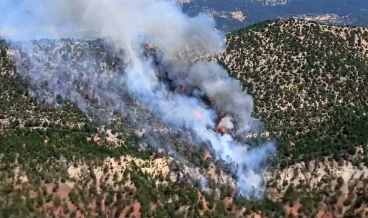 Bolu’nun Göynük ilçesinde ormanlık alanda henüz bilinmeyen nedenle yangın çıktı. Yangın söndürme helikopteri ve arazözlerle alevlere müdahale sürüyor.