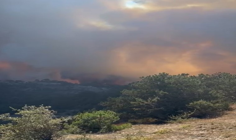 Öte yandan yangın, dron ile havadan görüntülendi.