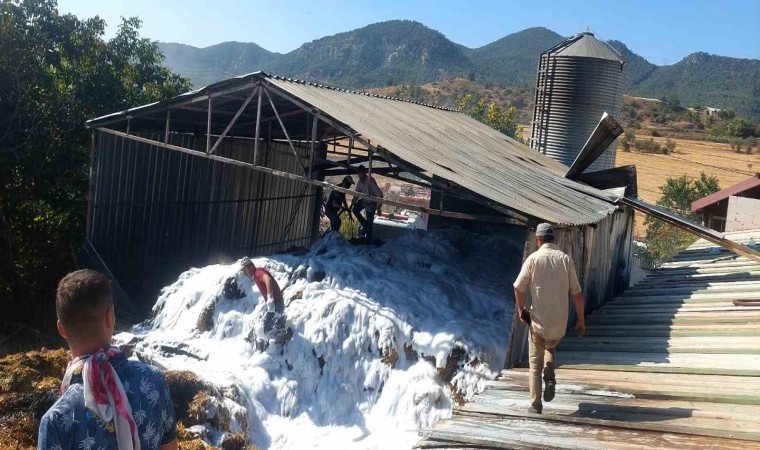 Yangın, Hasanlar köyünde İbrahim Y.’ye ait samanlıkta meydana geldi. Edinilen bilgiye göre, öğle saatlerinde henüz bilinmeyen bir sebeple samanlık alev aldı. İçerisinde 3 bin saman balyasının bulunduğu samanlıktaki yangın, rüzgarın etkisiyle büyüdü. 112 Acil Çağrı Merkezi’ne yapın ihbar üzerine bölgeye arazöz, itfaiye ve tedbir amaçlı sağlık ekipleri sevk edildi. 3 bin saman balyasının alevler içerisinde kaldığı samanlığı söndürmek için ekipler ve köylüler seferber oldu. Samanlığın dibinde bulunan inekler de dumanlar arasından kurtarıldı. Yangında samanlık küle döndü.
