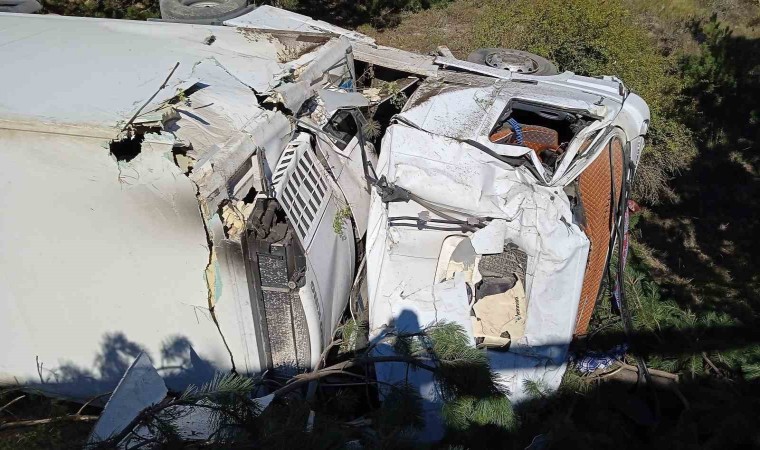 Bolu’da kontrolden çıkan tır şarampole yuvarlandı. Meydana gelen kazada tır sürücüsü yaralandı.