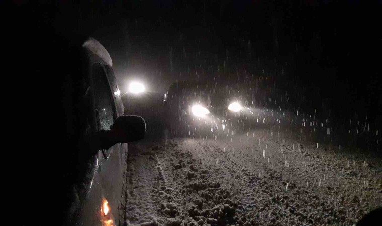 Bolu’nun Mudurnu ilçesinde Nallıhan ve Akyazı ilçelerini birbirine bağlayan karayolunda kar yağışı etkili oluyor.