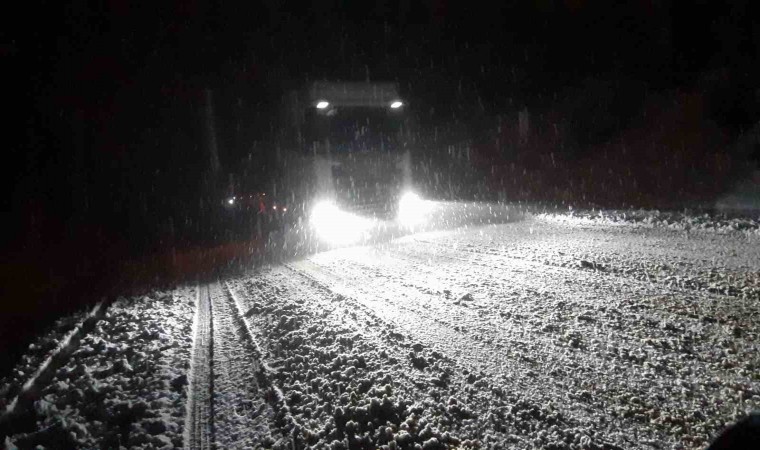 Bolu’nun yüksek kesimlerinde gün boyunca aralıklarla kar yağışı etkili oldu. Kar yağışının etkili olduğu bölgelerden biri de Mudurnu ilçesi oldu. Mudurnu ilçesinin içinden geçen Nallıhan-Akyazı karayolunda kar yağışı etkisini sürdürüyor. Yol kenarlarında kar kalınlığı 10 santimetreye yaklaşırken, yolun kapanmaması için karayolları ekiplerinin çalışmaları sürüyor. Özellikle yük taşıyan tırların kullandığı yolda kış lastiği olmayan araçlar güzergahta ilerlemekte zorlanıyor.