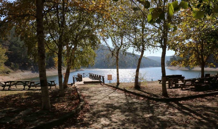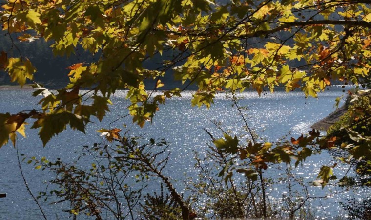 Türkiye’nin cennet şehirlerinden biri olan Bolu’da sonbahar güzelliği yaşanıyor. Sonbaharın güzelliğini yansıttığı Göynük ilçesinde bulunan Sünnet Gölü, ziyaretçilerini ağırlamaya devam ediyor. Etrafı ağaçlarla çevrili olan göl, doğal güzelliklerinin yanı sıra kuraklıkla mücadele ediyor. Yaklaşık 5 metre kıyılardan çekilen göl, Bolu tarihinin en büyük orman yangınında önemli rol oynamıştı. 3 gün süren yangında helikopter 775 ton su alarak 289 sorti yapmıştı.