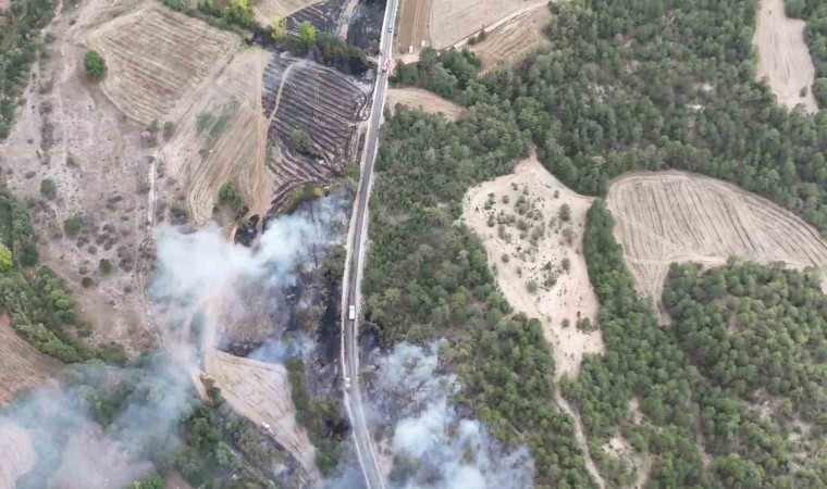 BOLU (İHA) – Bolu’nun Göynük ilçesinde çıkan orman yangını karadan müdahaleyle kısmen kontrol altına alındı. Ekiplerin söndürme ve soğutma çalışmalarının sürdüğü yangın, havadan da görüntülendi.