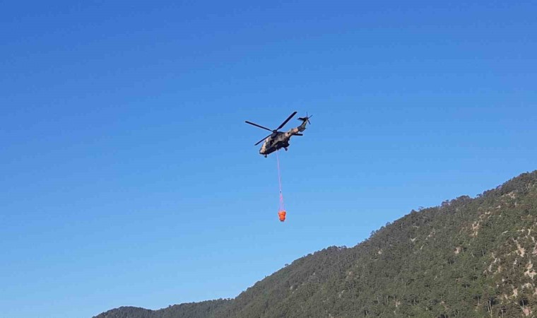 Gece boyu karadan müdahale edilen orman yangınına günün ilk ışıklarıyla birlikte havadan müdahale edilmeye yeniden başlandı.