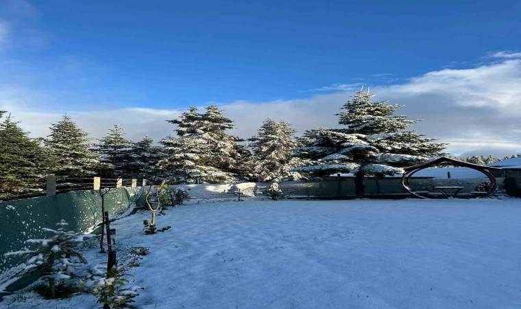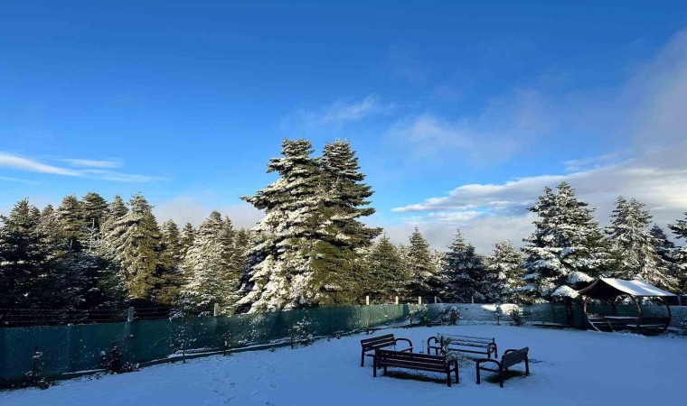 Bolu’da hava sıcaklıklarının düşmesiyle yüksek kesimler beyaz örtüyle kaplandı.