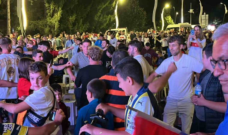 Bolu Belediyesi tarafından Valilik Meydanı’nda EURO 2024 son 16 turunda Türkiye’nin, Avusturya ile karşı karşıya geldiği maç için dev ekran kuruldu. Binlerce Bolulu tek yürek olarak maçı heyecanla takip etti. 90 dakika boyunca heyecanla mücadeleyi takip eden Bolulular maçın son düdüğü ile birlikte çeyrek finale çıkmanın coşkusunu yaşadı. Türkiye, sloganları atan Bolulular, çeyrek finali coşku ile kendinden geçti. Şehir merkezinde vatandaşlar uzun araç kuyrukları oluşturdu.