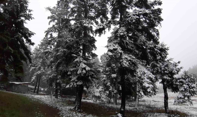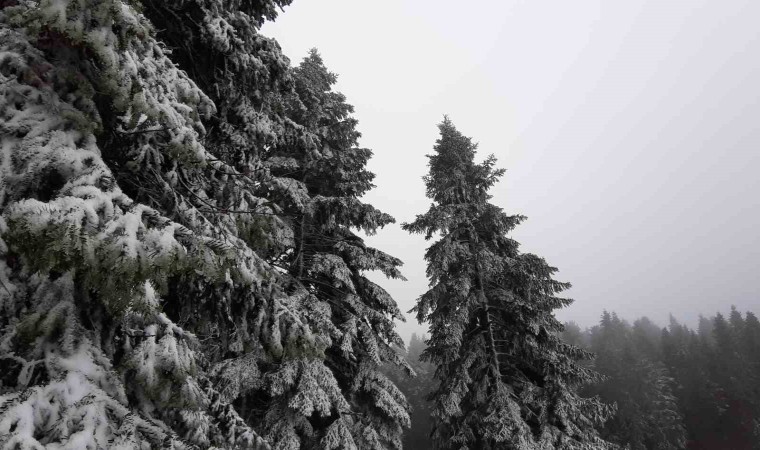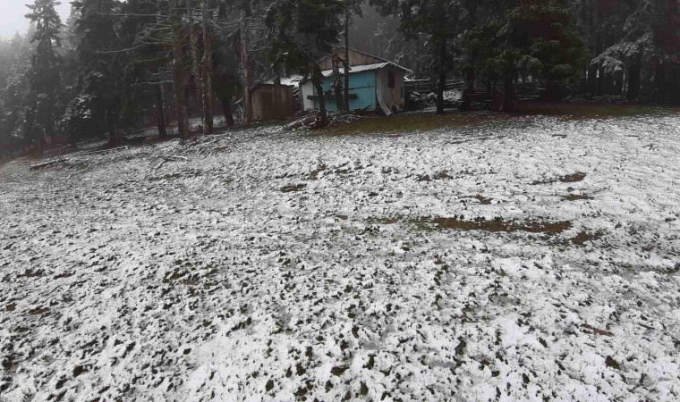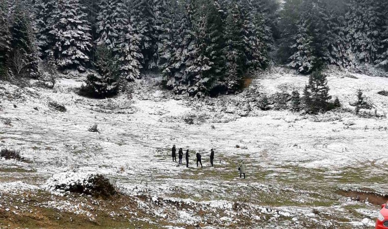 Bolu’nun yüksek kesimlerinde dün gece etkili olan kar yağışı nedeniyle yeşil alanlar beyaz örtüyle kaplandı.