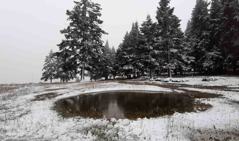 Bolu’da dün gün boyu etkili olan yağmur, gece saatlerinde yerini kar yağışına bıraktı. Abant Gölü Milli Parkı bölgesinde gece boyunca etkili olan kar yağışı nedeniyle yeşil alanlar beyaz örtüyle kaplandı. Kartpostallık görüntülerin ortaya çıktığı yüksek kesimlerde kar kalınlığı 10 santimetreye ulaştı. Soğuk havanın etkili olduğu bölgede sıcaklık sıfırın altında 2 derece olarak ölçüldü.