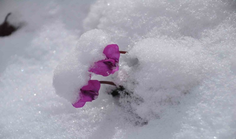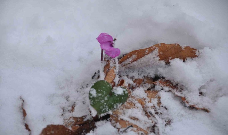 Bolu’nun yüksek kesimlerinde dün gece saatlerinde etkili olan kar yağışı nedeniyle yeşil alanlar beyaz örtüyle kaplandı. Beyaz örtünün arasından çıkan çiçekler, kartpostallık görüntüler oluşturdu.