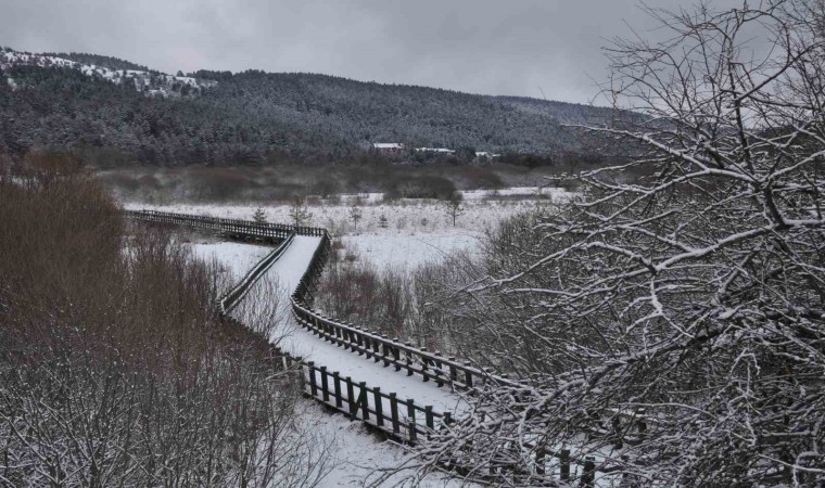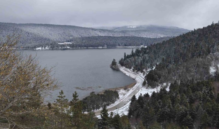 Bolu’da dün gün boyu etkili olan yağmur, gece saatlerinde yerini kar yağışına bıraktı. Abant Gölü Milli Parkı bölgesinde gece boyunca etkili olan kar yağışı nedeniyle yeşil alanlar beyaz örtüyle kaplandı. Kartpostallık görüntülerin ortaya çıktığı yüksek kesimlerde kar kalınlığı 10 santimetreye ulaştı. Soğuk havanın etkili olduğu bölgede sıcaklık sıfırın altında 5 derece olarak ölçüldü. Ayrıca beyaz örtüyle kaplanan Abant Gölü Milli Parkı’na ziyarete gelen vatandaşlar, kar manzarası karşısında bol bol hatıra fotoğrafı çektirdi.