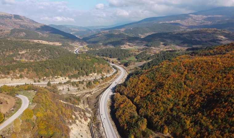 Bolu-Mudurnu kara yolunda sonbahar mevsiminin gelmesiyle ağaçlardaki yapraklar renkli manzaralara sahne oldu. Sonbaharda sarıya ve kırmızıya bürünen ormanlar, seyir zevki oluşturdu. Oluşan güzel manzara havadan dron ile havadan da görüntülendi.