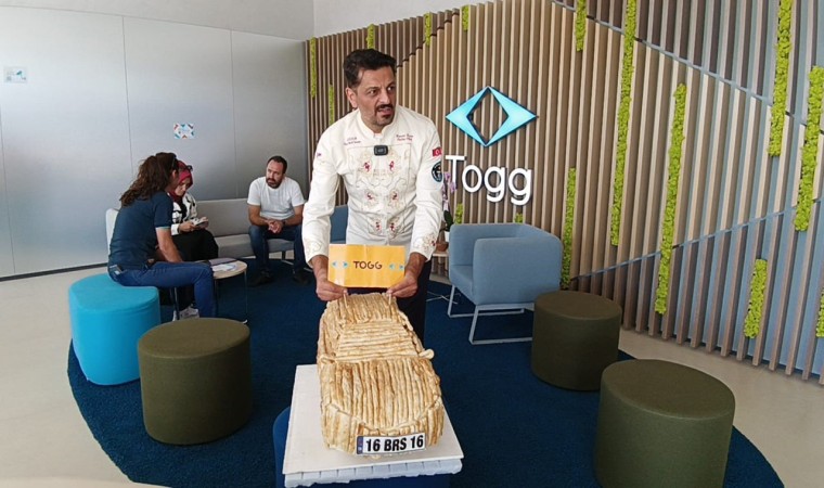 Bursa’lı rekortmen börekçi Hasan Acar, 177 bin başvuru arasından 4 bin 951’inci şanslı kişi olarak kendisine çıkan Togg otomobilini almaya börekten yaptığı Togg ile gitti. Börek Togg’u verip gerçeğini teslim alan Hasan usta Togg çalışanlarına da börek ikram etti.
