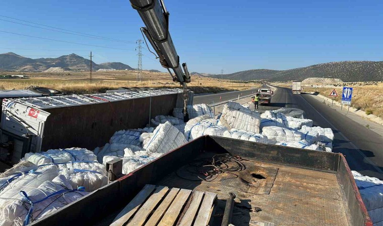 Afyonkarahisar’da boş çuval taşıyan tırın devrilmesi sonucu yaşanan trafik kazasında ikisi çocuk 3 kişi yaralandı.