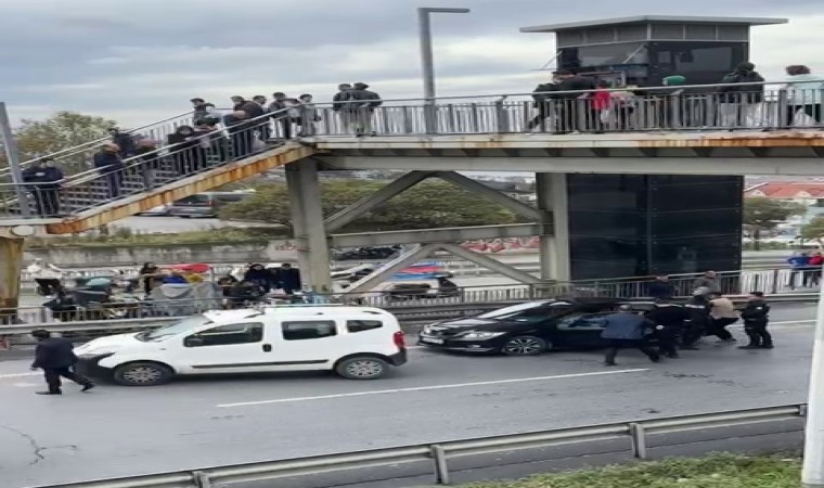 Olay, Büyükçekmece Tüyap metrobüs durağının altındaki köprüde yaşandı. Boşanma aşamasında olan bir kadın, mahkeme sonrası kendi ailesiyle birlikte aracıyla seyir halindeyken, kocası aracının önünü kesti. Aracından inen öfkeli koca, boşanma aşamasında olduğu eşinin ailesiyle tartışmaya başladı. Bir süre sonra tartışma kavgaya dönüştü. Çevredeki vatandaşlar durumu polis ekiplerine bildirdi. Kavga anı vatandaş cep telefonu kamerasına yansıdı.