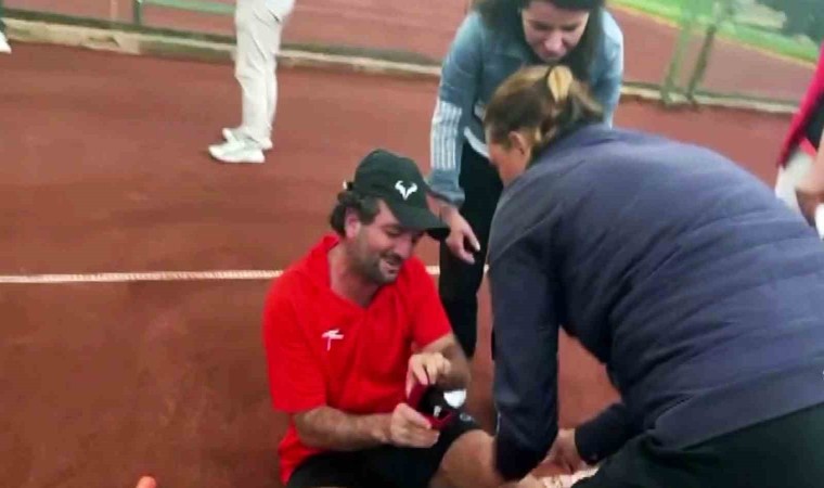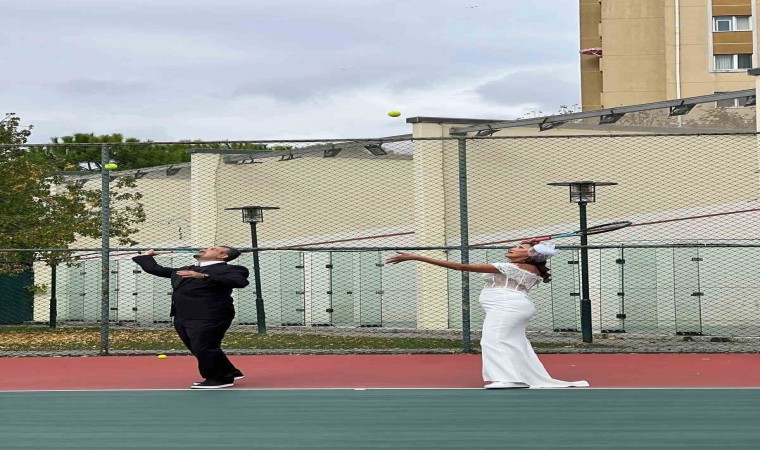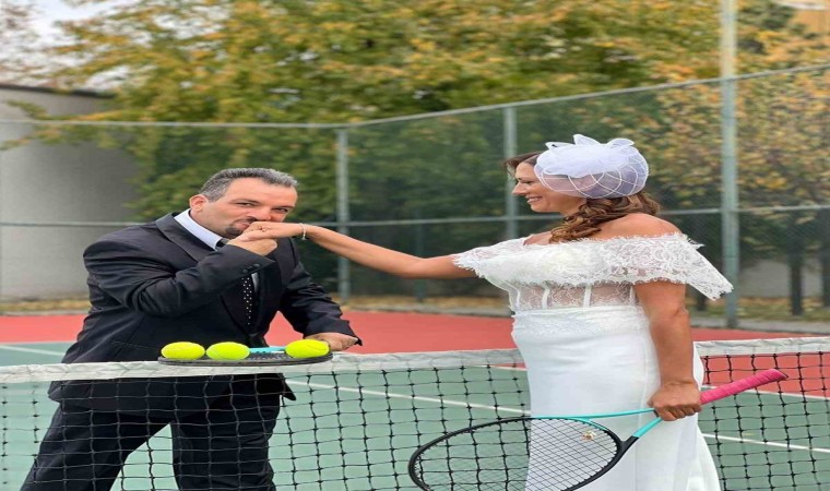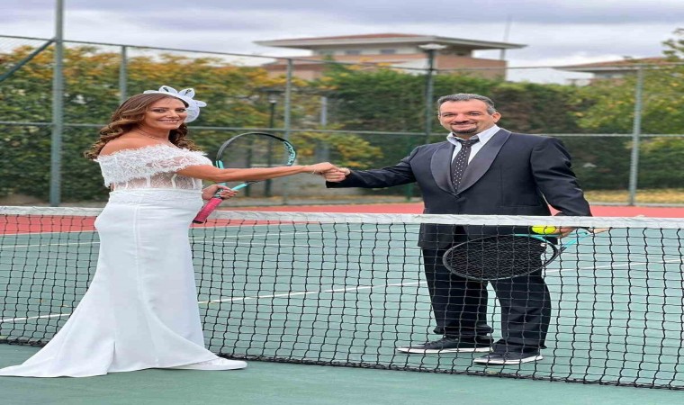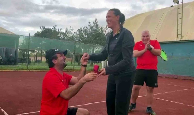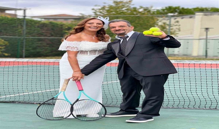 25 yıldır tenis eğitmenliği yapan Gökhan Başak (43), 7 yıl önce İstanbul’da Sharapova ve Çağla Büyükakçay müsabakasında Dilek Gözüyılmaz (51) ile tanıştı. 7 yıldır birlikte tenis oynamaya başlayan çift, yaklaşık bir ay önce Türkiye Tenis Federasyonu’nun Sakarya’da düzenlediği T200 Masters Tenis Turnuvası’na katıldı. Gökhan Başak, burada daha öncesinde görülmemiş sürpriz bir evlilik teklifine imza attı. Gökhan Başak, oynayacağı final müsabakası öncesi çıktığı kortta ısınma hareketleri esnasında sakatlanmış gibi yaparak yere düştü. Sürpriz gereği acı içerisinde yerde kıvranan Başak’ın yardımına, kız arkadaşı Dilek Gözüyılmaz koştu. Panik halindeki Gözüyılmaz’a, Başak cebinden çıkardığı yüzük ile evlilik teklifi etti. Hayrete düşen Gözüyılmaz ise teklifi kabul etti. Tenis sayesinde tanışarak 16 Kasım tarihinde dünya evine giren çift, düğün fotoğraflarını da gelinlik ve damatlık ile tenis kortunda çektirdi.