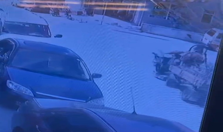 Sakarya’nın Geyve ilçesinde sahibinin elinden kaçtığı öğrenilen at, cadde üzerinde seyir halinde olan motosikletliyi altına aldı. İlginç kaza anı ise güvenlik kamerasına saniye saniye yansıdı.