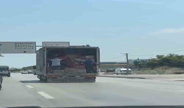 Bursa’da bir nakliye firması yaptığı taşımacılıkla görenleri hayrete düşürdü. Kamyonun kapağı kapanmayınca arkada bulunan çalışanlar kollarını açarak eşyaların düşmesinin önüne geçmeye çalıştı. Trafiği tehlikeye tehlikeli taşımacılık kameraya yansıdı.