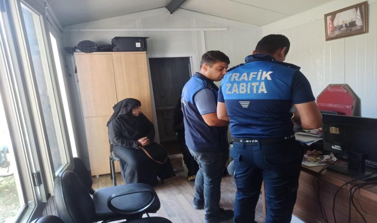 Boynuna astığı kartonla dilenerek dilsiz numarası yapan kadın zabıtadan kaçamadı
