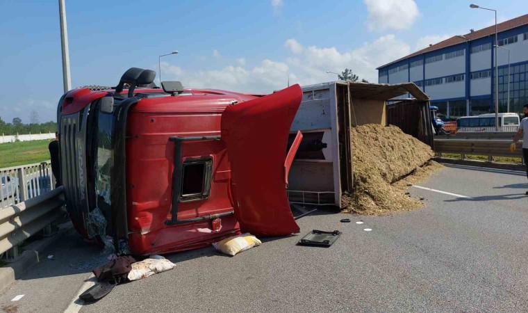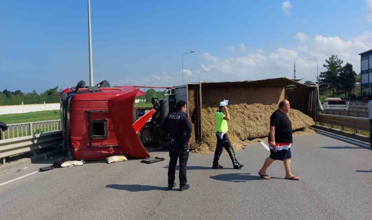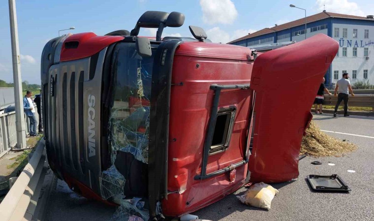Samsun’da aracıyla seyir halindeyken boynunu arı sokan tır sürücüsü viyadük girişinde aracının devrilmesi sonucu meydana gelen kazada yaralanarak hastanelik oldu.