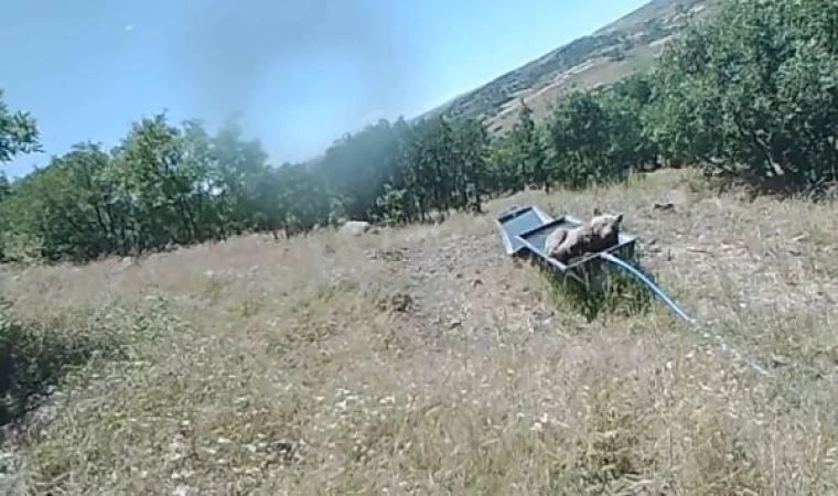 Boz ayının su içtiği sıvata girip serinlemesi fotokapana yansıdı