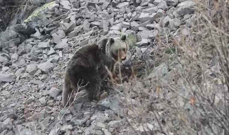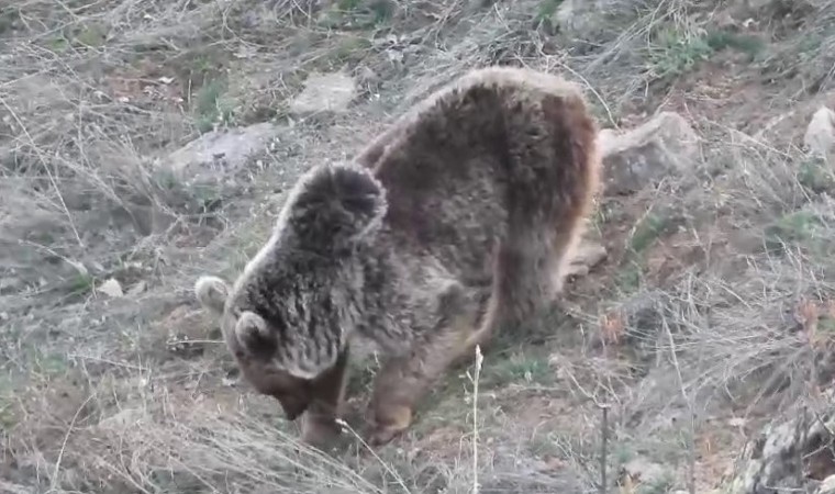 Erzurum’un İspir ilçesinde kış uykusundan uyanan bozayılar yiyecek için araziye çıktı. Yedigöl Mahallesi yaylasında ortaya çıkan ayı, doğasever Bülent Erkan tarafından görüntülendi.