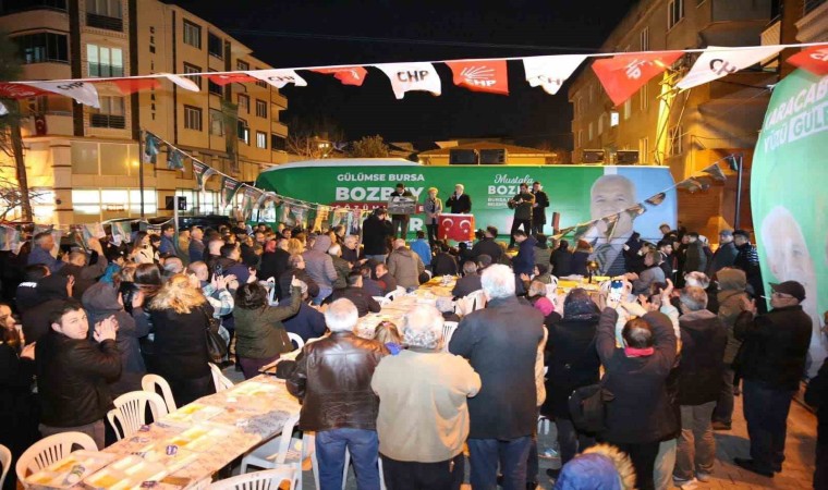 “ Tarım ve hayvancılık ile geçinen bütün vatandaşlarımızın, çiftçimize ve köylümüze desteğimiz olacak” diyerek sözlerini sürdüren Bozbey, “Mazot, gübre, yem, fide, aşı ve nakdi yardıma kadar birçok destek paketlerini hazırladık. 1 Nisan’dan itibaren göreve geldiğimizde bunları eşit ve adil bir şekilde Bursalılar ile buluşturacağız. Merak etmeyin her sorunun çözümü var. İşin ehli biziz. Onun için tüm Karacabeylilerden destek istiyoruz. Hiç kimseyi ötekileştirmeden siyasetine, inancına, kimliğine, rengine ve sıfatına bakmadan biz herkesten oy istiyoruz. Bursa herkesin hakkını savunan, adil, akıllı ve dürüst bir belediyecilik ile tanışacak. Önce planlama yapacağız. Karacabey’i yaşanılabilir, insanlarımızın başka yere gitmediği, gençlerin eğlenebildiği yada sosyal ilişkileri kurmak için Nilüfer’e gitmediği bir ortamı Gönül hanım ile burada sağlayacağız. Buna emin olun” ifadelerini kullandı.