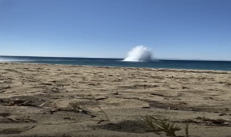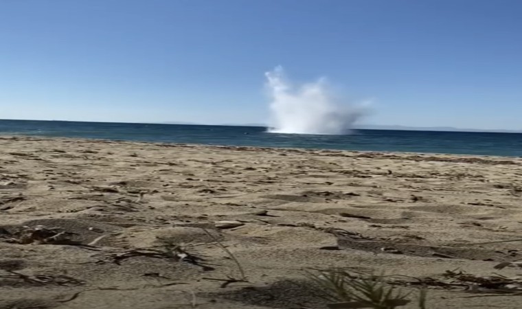 Çanakkale’nin Bozcaada ilçesinde karadan yaklaşık 40 metre açıkta bulunan ve 2. Dünya Savaşı’ndan kalma olduğu değerlendirilen İngilizlere ait mayın kontrollü olarak imha edildi.