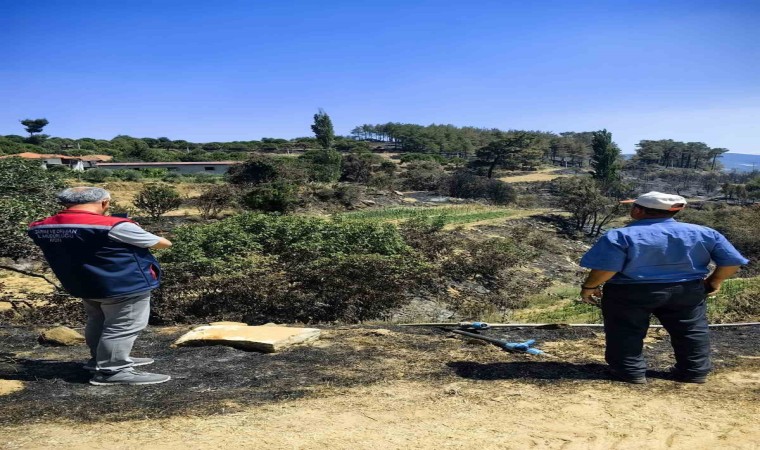 Aydın’ın Bozdoğan ilçesinde çıkan orman yangınının ardından İl Tarım ve Orman Müdürlüğü ekipleri, tarım arazilerinde hasar tespit çalışmalarına başladı.