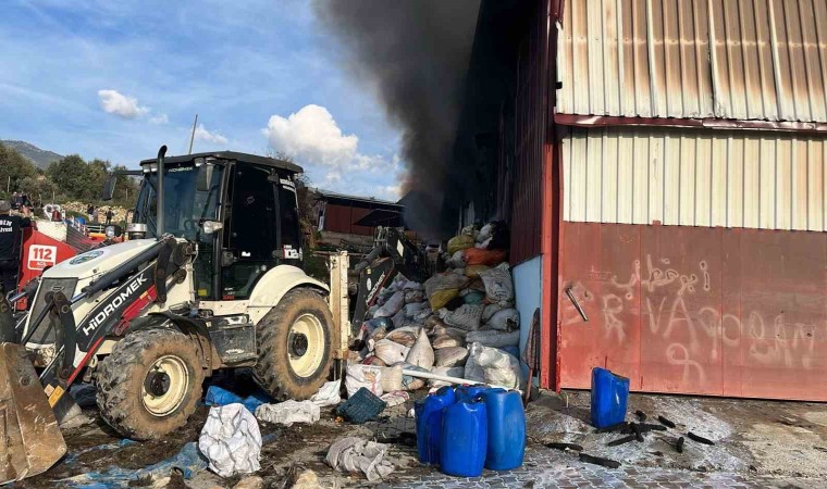 Aydın’ın Bozdoğan ilçesinde bulunan bir kıl çadır üretim imalathanesinde çıkan yangına ekiplerin müdahalesi sürüyor.