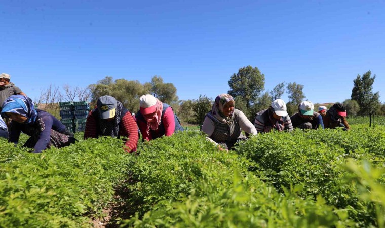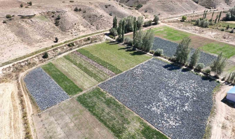Sivas’ın Yıldızeli ilçesine bağlı Töngel köyünde 80 dönümlük araziye ekilen 10 çeşit sebze adeta bozkırı yeşertti.