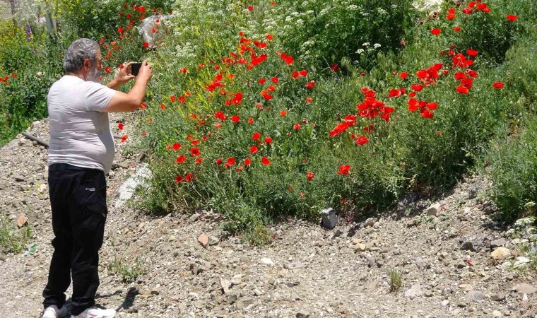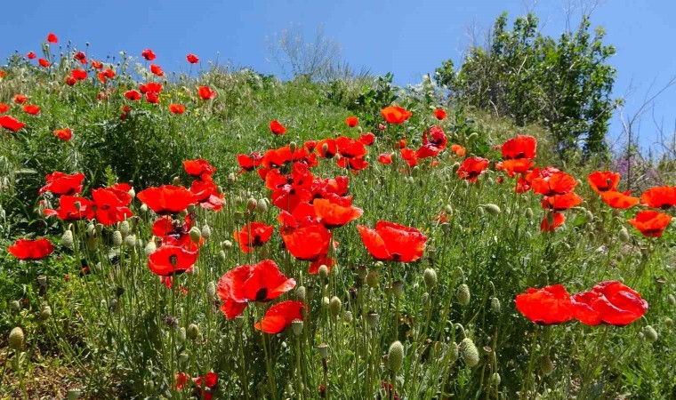 Yozgat’ta ilkbahar mevsimiyle birlikte doğada açan, ince dallı narin yapraklarıyla dikkat çeken gelincik çiçekleri, görsel şölen sunuyor.