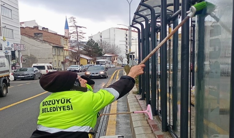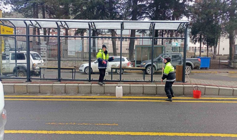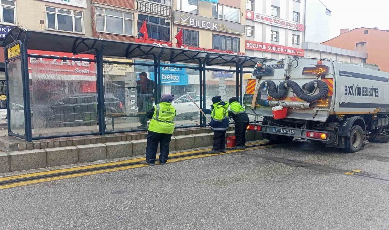 Belediye ekiplerince ilçe genelinde düzenli olarak yapılan temizlik çalışmaları dahilinde vatandaşların yoğun olarak kullandığı kapalı ve açık durakların iç zeminleri yıkanarak daha hijyen bir hale getirilirken durakların camları da iç ve dış cepheleri olmak üzere temizlenerek vatandaşların kullanımına sunuluyor. Çalışmalar dahilinde BOZTRAM istasyonları da yıkanarak temizleniyor ve daha hijyen bir hale getiriliyor.