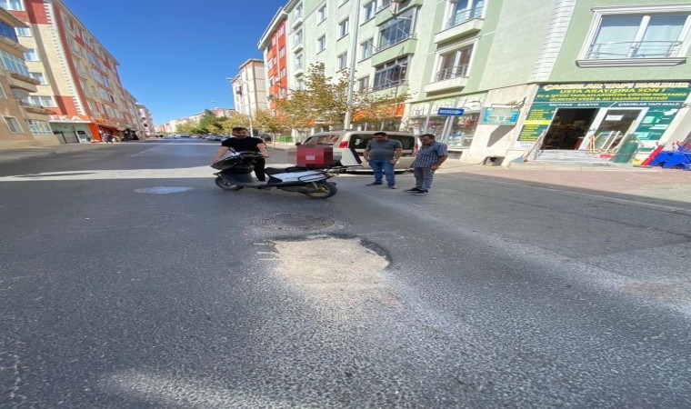 Olay yerine gelen trafik polisinin durumu belediyeye bildirmesi üzerine, çukura zift atıldı.