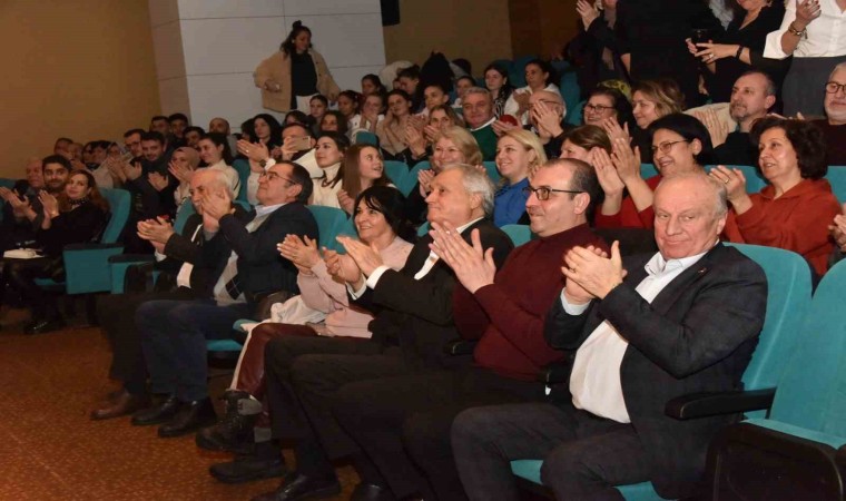Başkan Bakkalcıoğlu daha sonra oyunun hazırlanmasında görev alan herkesi tebrik ederek çiçek takdim etti.